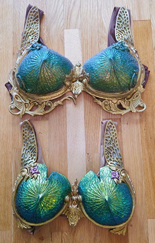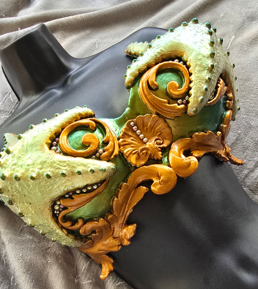 Premade Asterias (Starfish) Custom Silicone Top Colorshifting Green and Bronze with Pearls Up to Size 34F