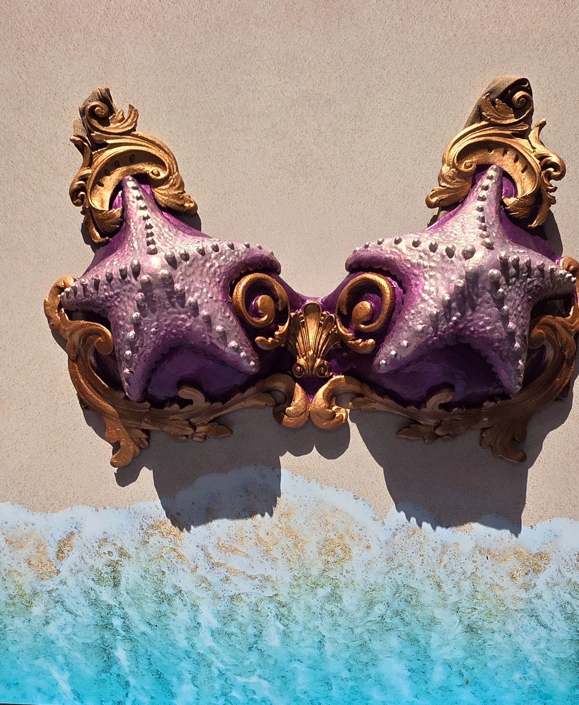 Hand-sculpted airbrushed silicone mermaid top, this is a full Dragon Skin Silicone top.